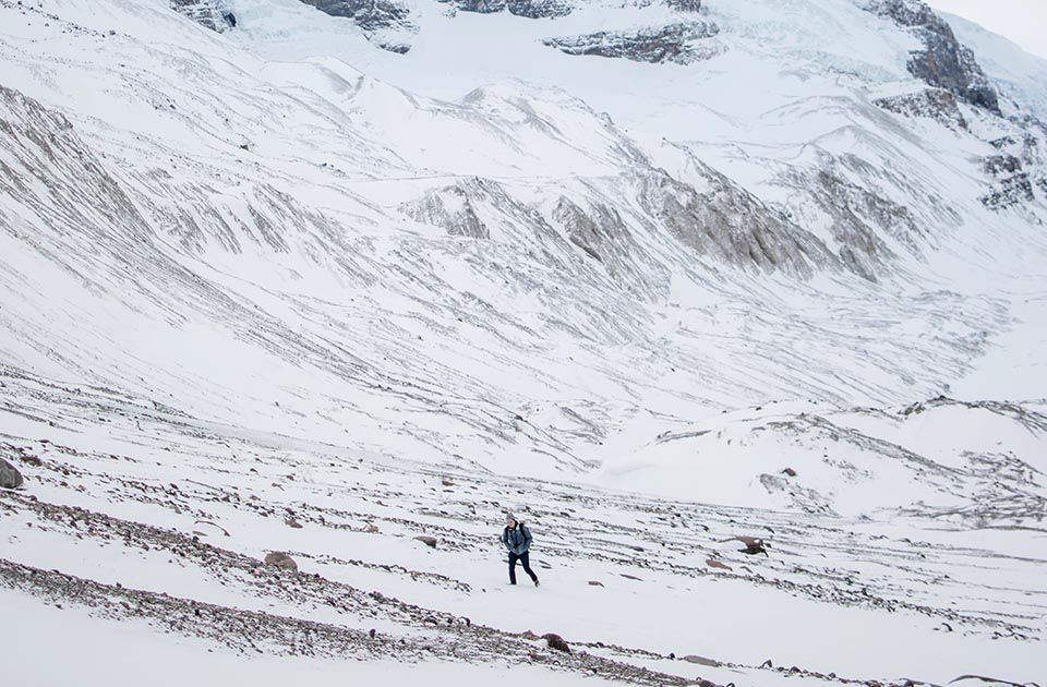 The only thing she's got left is an old transmitting device, that allows her to stay in contact with the last remaining mountain rescue expert.