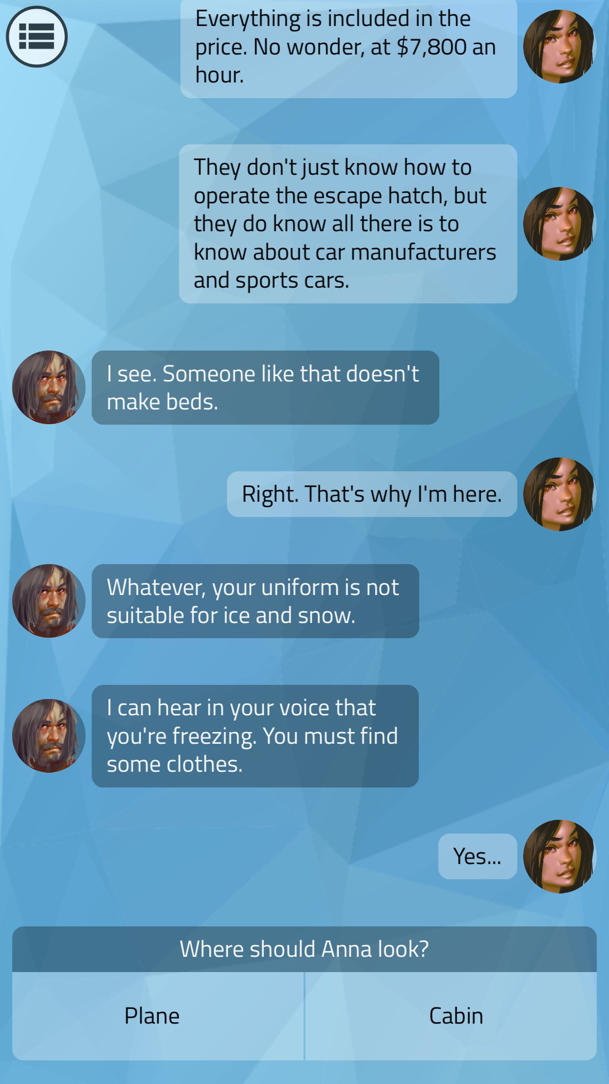 Cold Crash is a game for iPhone and iPad. It's an interactive story about a girl who's the last survivor of a plane crash in the alps. She desparately tries to stay alive, whatever it will take.