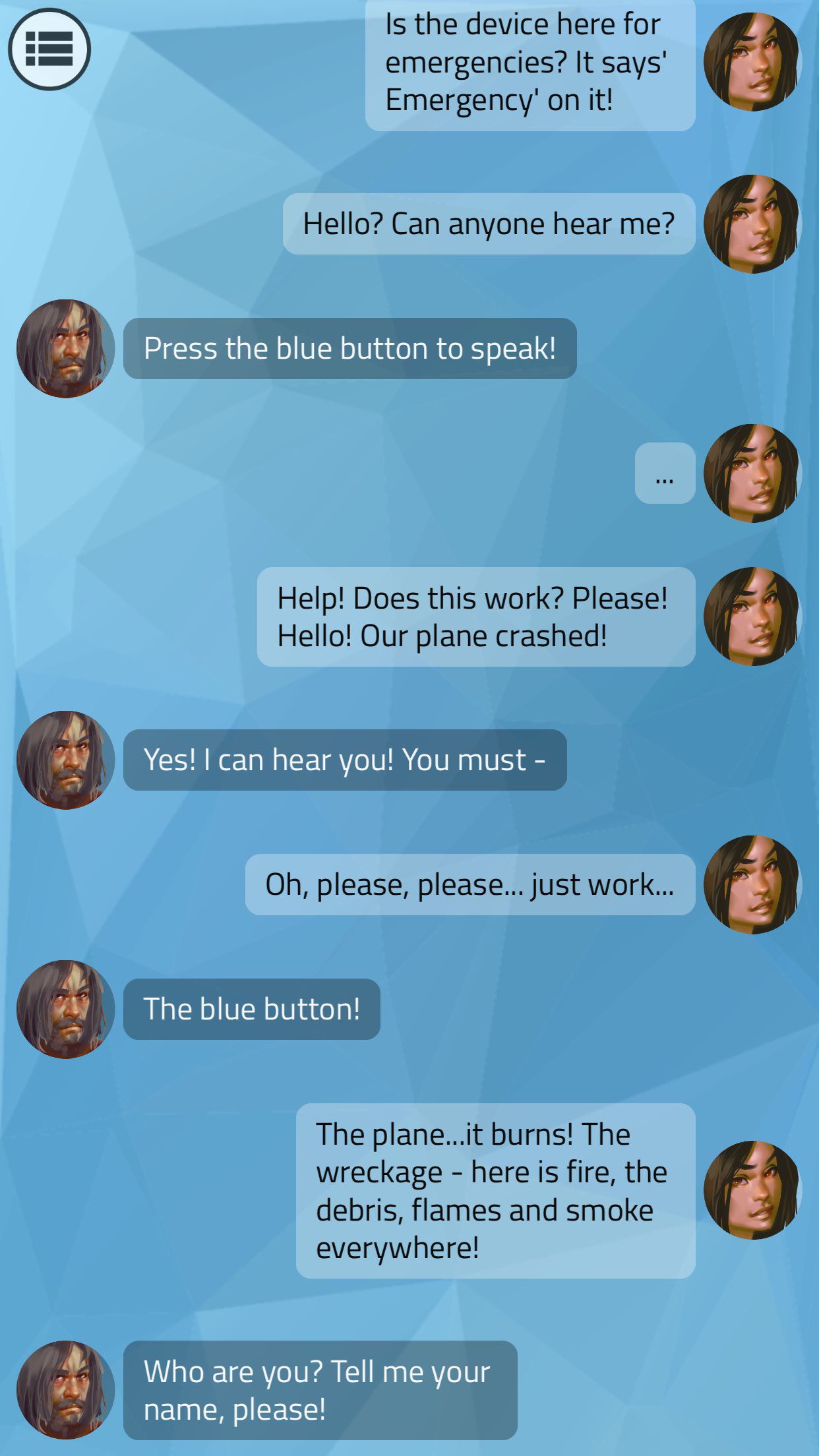 "Help! Does this thing work at all? Please! Hello! Our plane crashed!"